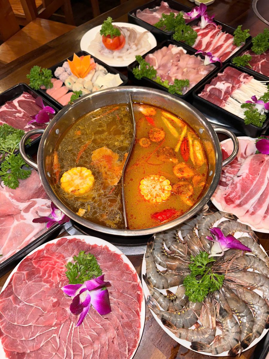 Menu phong phú: lẩu, thịt, hải sản tươi ngon.